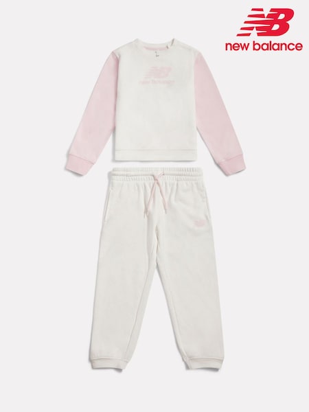 New Balance Pink/White Infant Colourblock Crew Neck Sweat Top & Joggers Set