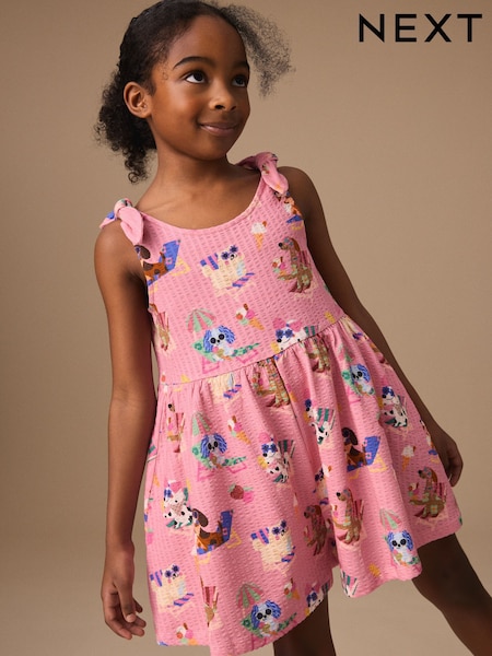 Pink Pet Print Tie Shoulder Playsuit (3-16yrs)