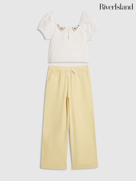 River Island White Puff Sleeve Top & Denim Jeans Set