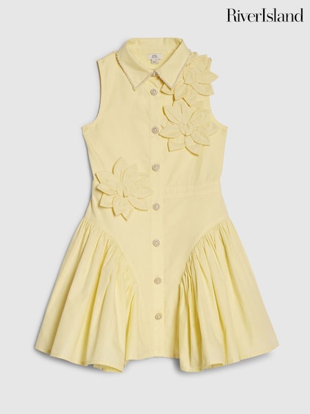 River Island Yellow 3D Flower Prom Dress