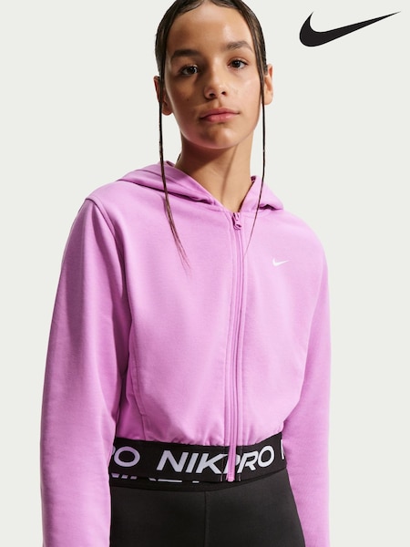 Nike Magenta Pink Pro Dri-FIT Cropped Fleece Hoodie