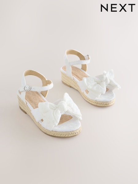 White Wide Fit (G) Leather Twist Sandals with Touch Fastening