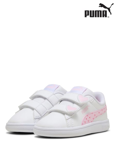Puma White/Pink Infant Smash 3.0 Heart Trainers