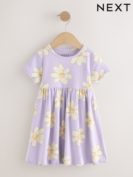 Lilac Daisy Short Sleeve Ribbed Dress (3mths-7yrs)