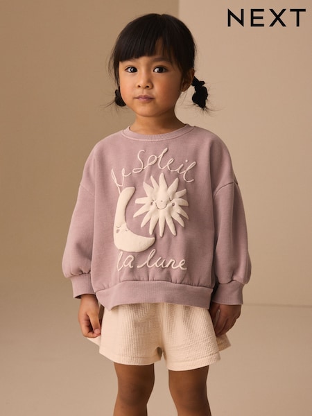 Brown Moon & Sun Crew Neck Sweatshirt & Shorts Set (3mths-7yrs)