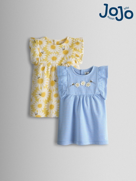 JoJo Maman Bébé Yellow Daisy 2-Pack Frill Sleeve T-shirt