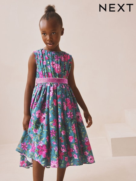 Teal Blue Floral Print Prom Dress (3-14yrs)