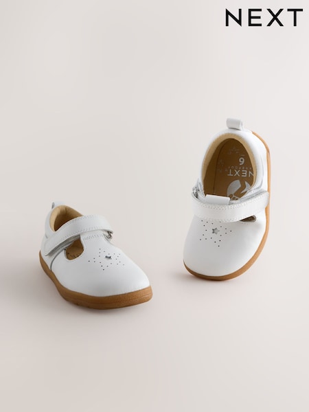 White Barefoot Leather Touch Fastening T-Bar Shoes