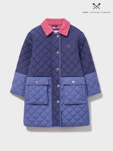 Crew Clothing Blue Hooded Diamond-Quilt Coat