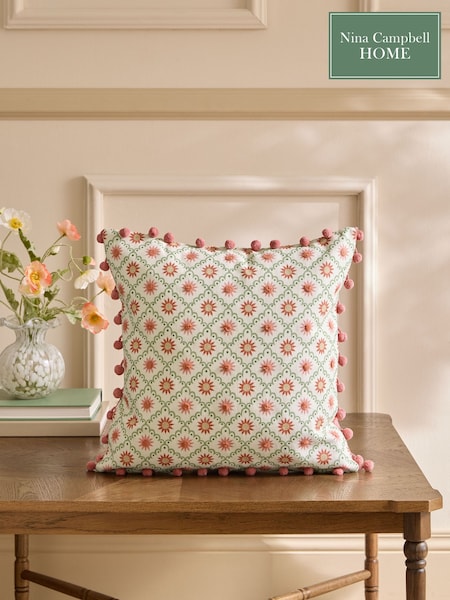 Nina Campbell Pink Star Trellis Pom Cushion