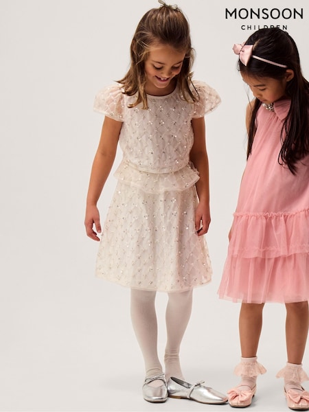 Monsoon Pink Olene Floral Embroidered Tulle Skirt