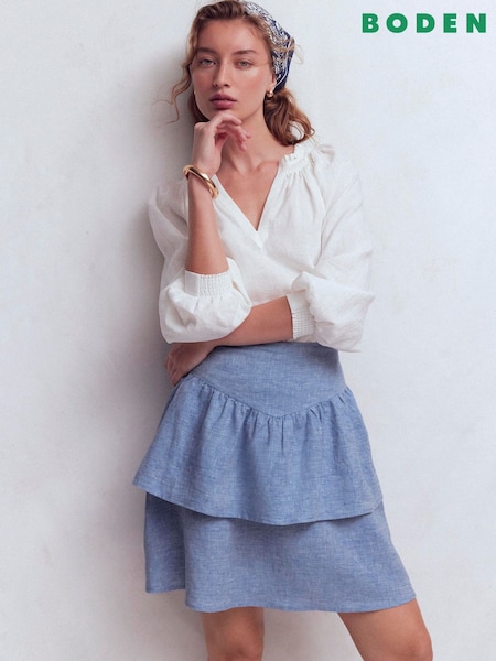 Boden Blue Valentina Linen Skirt