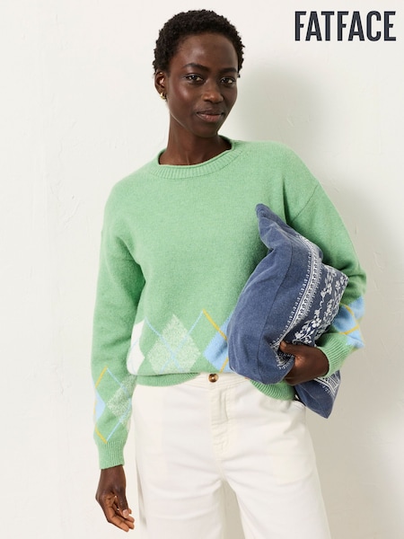 FatFace Rue Green Knitted Argyle Jumper