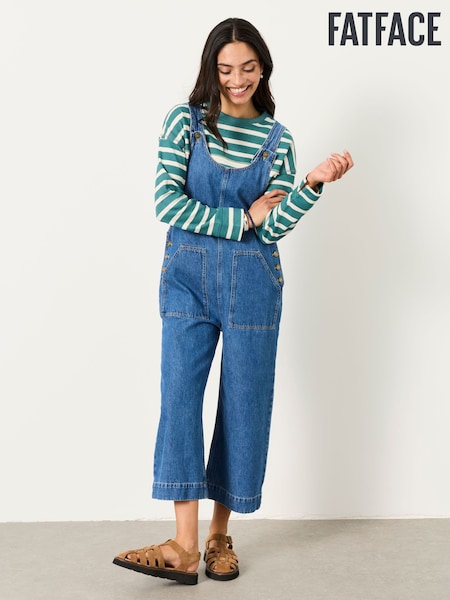 Raffles Blue Denim Cropped Wide Leg Dungaree