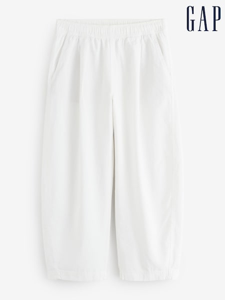 Gap White Mid Rise Linen-Blend Easy Barrel Trousers
