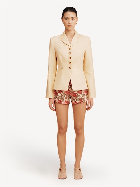 Posse Red Rosalie Floral Linen Strapless Midi Dress