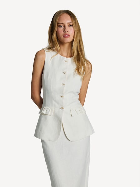 Posse Red Lori Polka Dot Open Back Linen Midi Dress