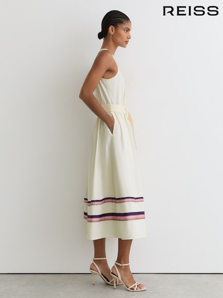Reiss Cream Sara Stretch-Cotton Stripe-Detail Midi Dress