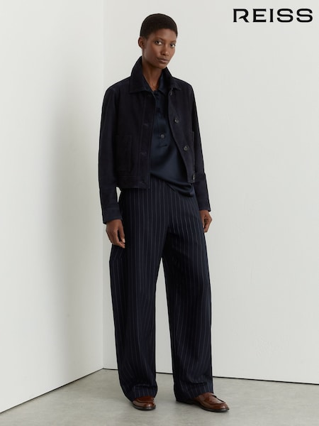 Reiss Navy Elle Barrel-Leg Pinstripe Trousers