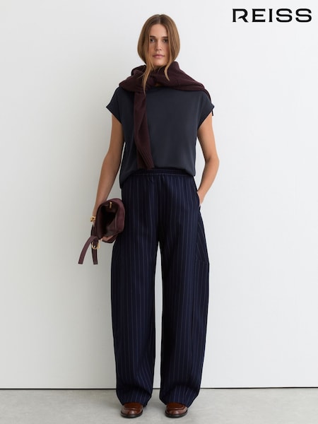 Reiss Navy Lara Cotton Ribbed-Neck Oversized T-Shirt