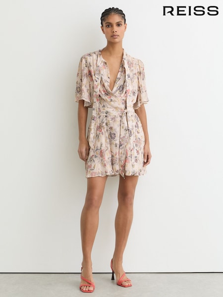 Reiss Neutral Luna Metallic-Floral Flippy Mini Dress