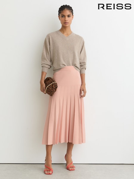 Reiss Pink Alice Knitted Stripe Pleated Midi Skirt