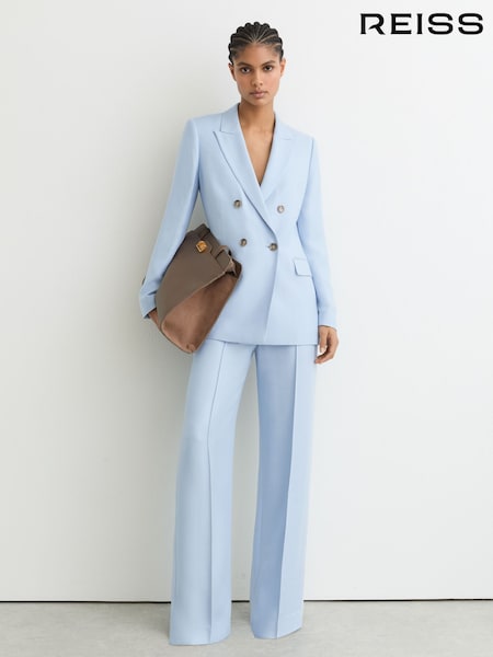 Reiss Blue Magda Double-Breasted Peak-Lapel Suit Jacket