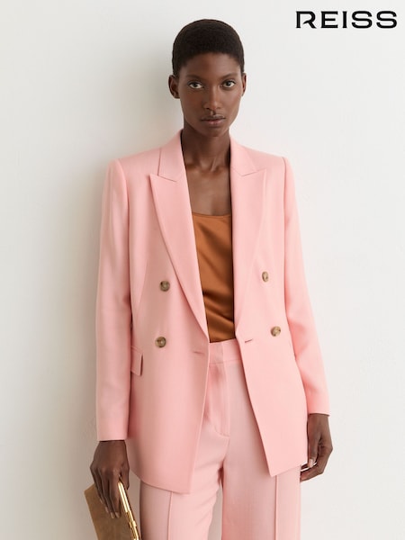 Reiss Pink Magda Petite Double-Breasted Peak-Lapel Suit Jacket