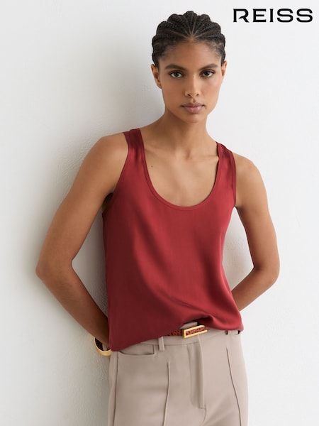 Reiss Rose Red Ruby Silk-Front Cami Top
