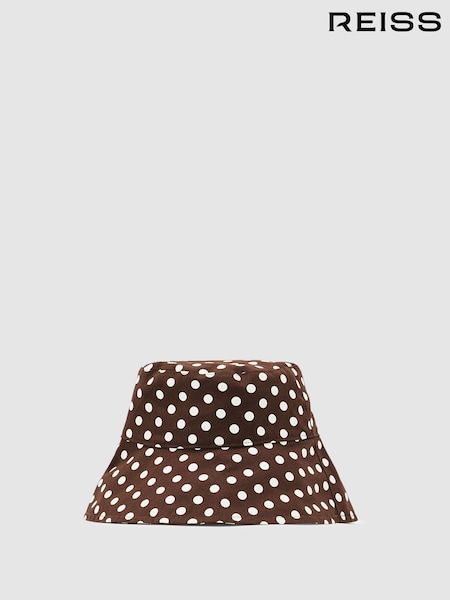Reiss Chocolate Paloma Cotton Polka-Dot Bucket Hat