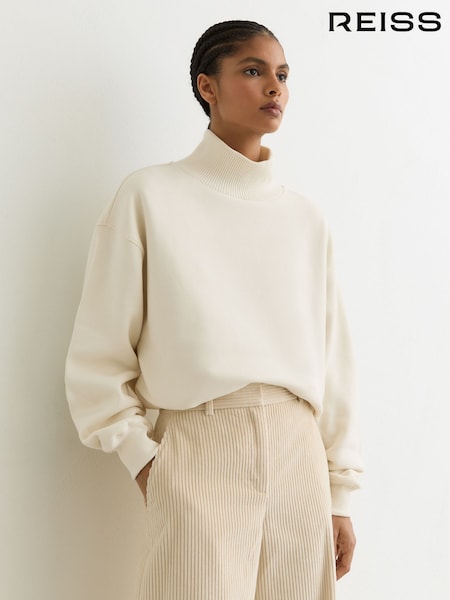Reiss Cream Tanya Cotton Funnel-Neck Sweatshirt