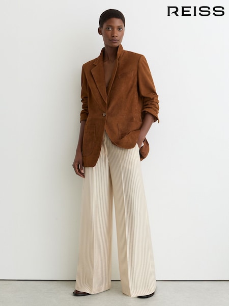 Reiss Cream/Black Jayce Petite Pinstripe Wide-Leg Trousers
