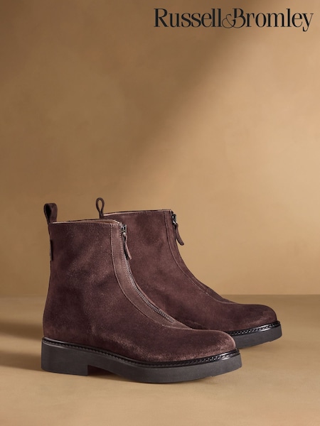 Russell & Bromley Brown Thames Zip Front Ankle Boots