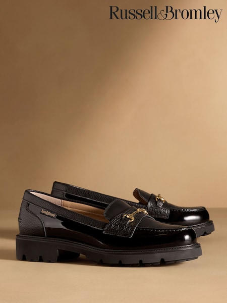 Russell & Bromley Black Westminster Snaffle Lug Sole Loafers