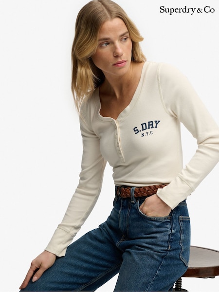 Superdry White Athletic Button Down Long Sleeve Top