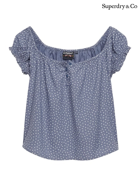 Superdry Blue Short Sleeves 1/2 Button Woven Top
