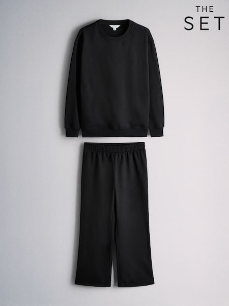 The Set Crew Neck Sweater and Wide Leg Joggers Set Black