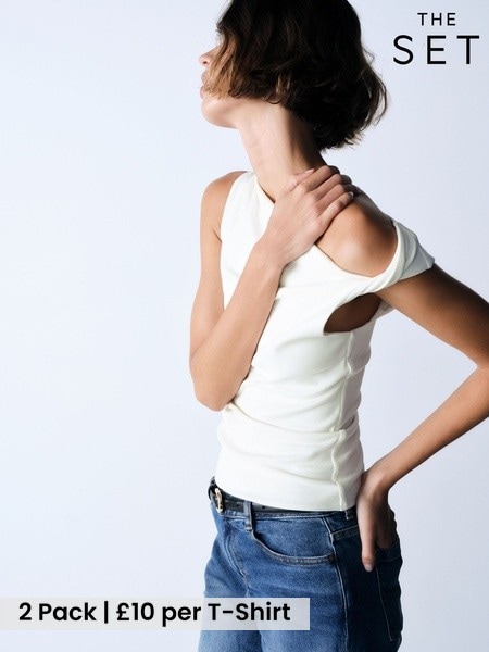The Set 2 Pack Twist Cowl Tops Cream/Black
