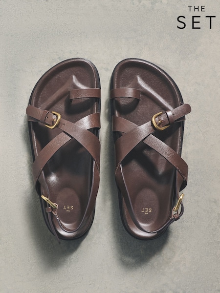 The Set Premium Leather Suede Footbed Sandal Chocolate Brown