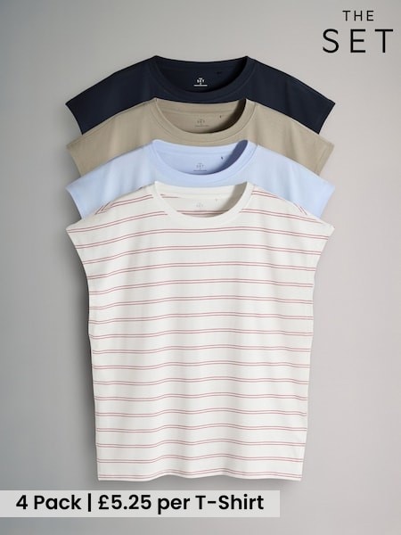 The Set 4 Pack Grown On Sleeve T-Shirt Navy/Light Blue/Stone Brown/Stripe