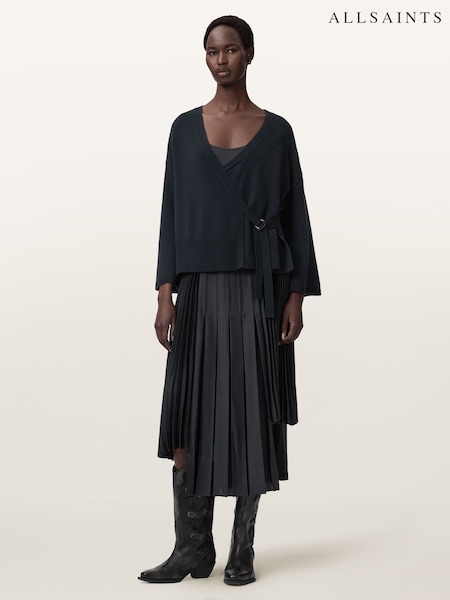 Hush Black Buckle Belt Knitted Merino Wool Midi Jumper Dress