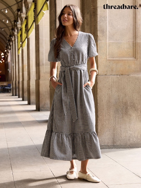 Threadbare Black Gingham Tiered Hem Puff Sleeve Maxi Dress