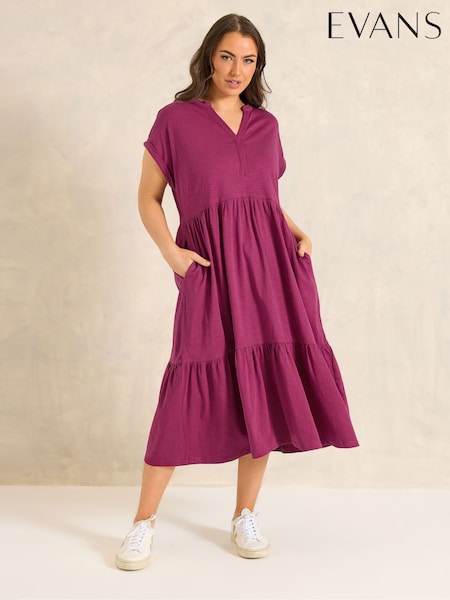 Evans Brown Short Sleeve Slub Jersey Midi Dress