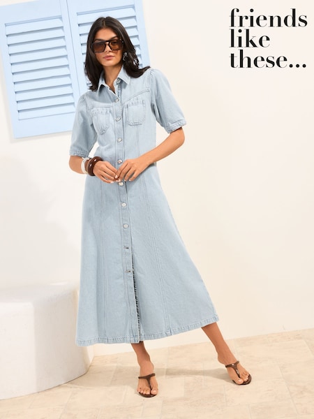 Friends Like These Light Wash Button Through Denim Midaxi Shirt Dress