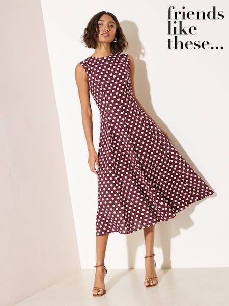 Friends Like These Brown Spot Sleeveless Midi Dress
