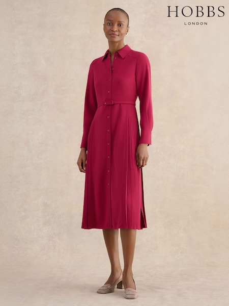PixieGirl Petite Red Long Sleeve Smock Button Midi Dress