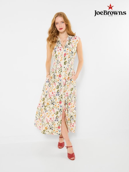Joe Browns White Jemima Floral Cotton Dobby Dress