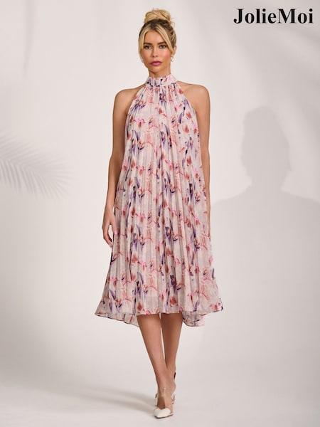Jolie Moi Pink Pleated Button Front Midi Dress