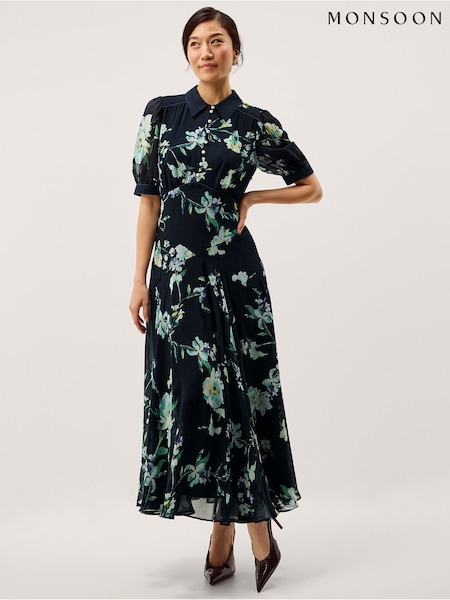 Monsoon Blue Lilwen Floral Midi Tea Dress