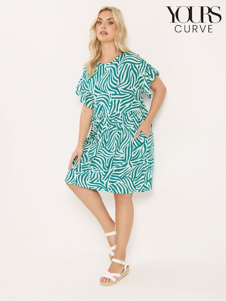 Yours Curve Green Filled Sleeve Tunic Midi Dress